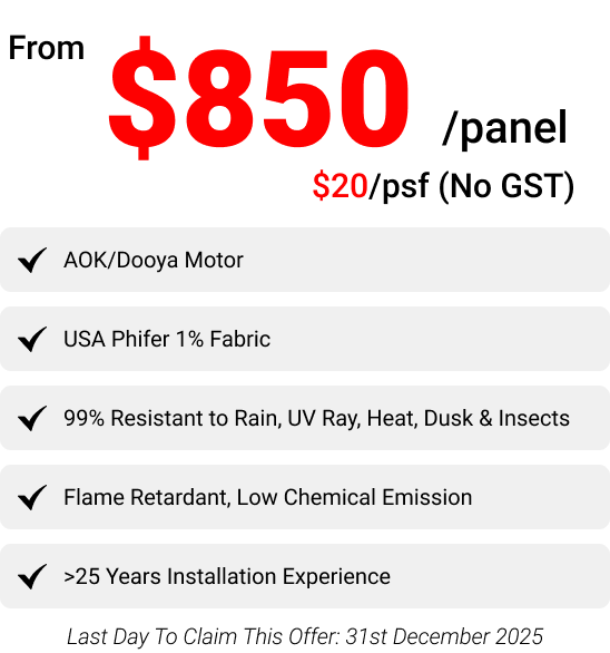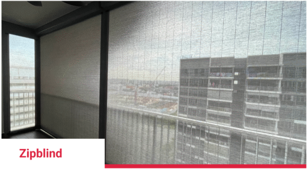 Privacy and comfort are further enhanced when the Zipblind system is paired with 1% openness fabric. The fine perforation blocks up to 99% of sunlight, along with its heat, dust, and insects, making Zipblind the ideal solution for year-round use in Singapore’s tropical climate.